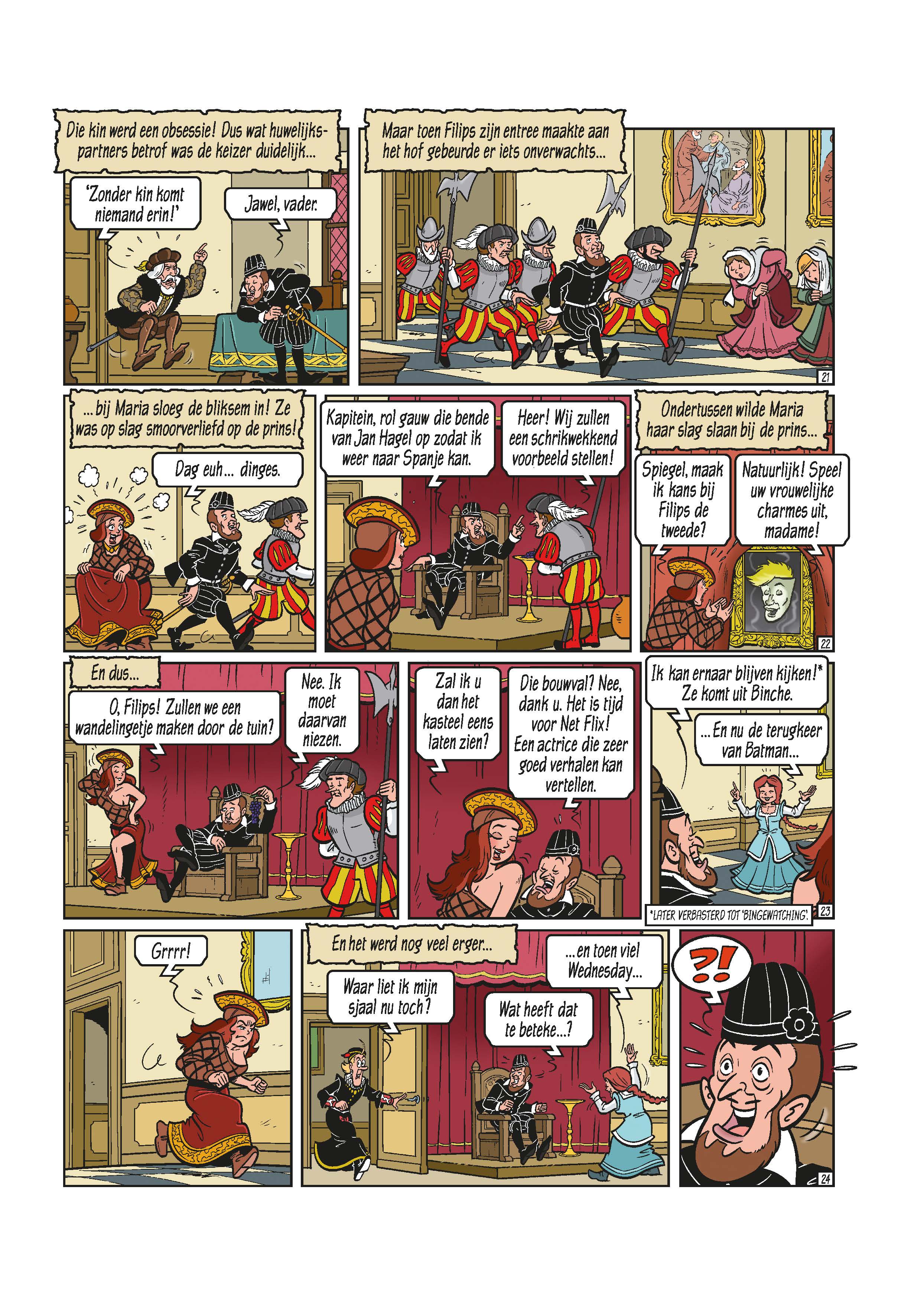 Wanneer onze vrienden de Beurs van Brussel bezoeken, daalt Sidonia af in het ondergrondse museum. Daar ligt volgens wetenschappers het échte Sneeuwwitje begraven. Als Sidonia na de rondleiding een bezoek brengt aan het kleinste kamertje komt ze oog in oog te staan met de geest van de toverspiegel. Deze vertelt haar het ware verhaal van Sneeuwwitje en hoe Sidonia daarin blijkbaar een erg grote rol speelt als Margaretha von Waldeck. Wanneer Filips de Tweede het hof van Maria van Hongarije in Brussel bezoekt, wordt Maria smoorverliefd op de prins. Deze heeft echter enkel oog voor Margaretha. Vanaf dan zal de jaloerse Maria er alles aan doen om de prins voor zich te winnen. Gelijktijdig wordt Brussel geteisterd door de bende van Jan Hagel. Zal ook dit sprookje een happy end kennen?