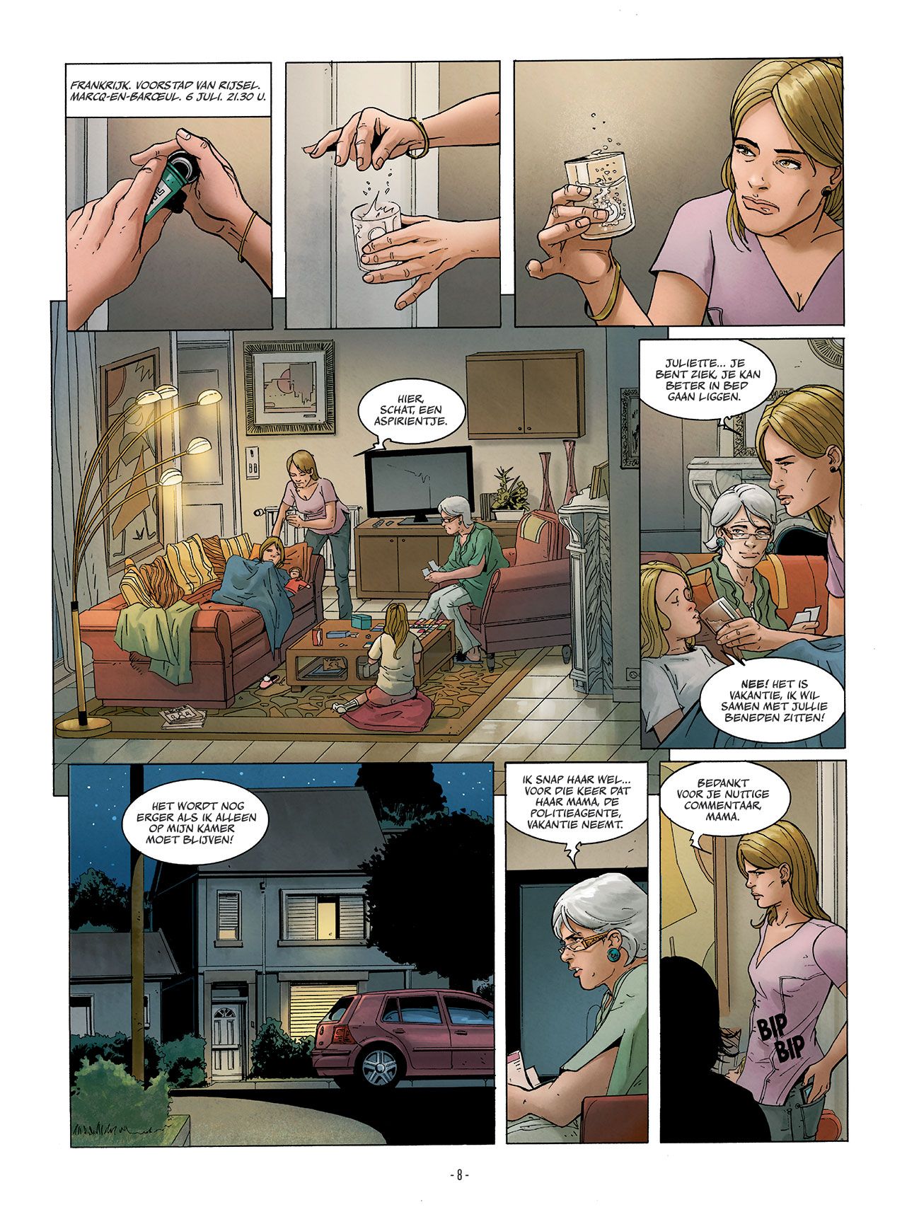 Verstripping van de gelijknamige roman van Franck Thilliez door Sylvain Runberg (Optic Squad) • Een waanzinnige thriller, geïnspireerd op waargebeurde feiten • De filmrechten voor het verhaal zijn in Amerika verkocht; bewerkt tot een zesdelige tv-reeks Ludo Sénéchal ruimt de zolder op van een zekere Wlad Sziplman, een verzamelaar van spionagefilms en curiositeiten, die is overleden na een noodlottige val van een ladder. Wlads zoon, Luc, geeft hem ook de laatste filmrol mee die de oude man in zijn projector aan het steken was toen hij stierf. Thuis, in Marq-en- Baroeul, bekijkt Ludo de film en… wordt op slag blind. Hij roept de hulp in van zijn ex, politie-inspectrice Lucie Henebelle. In het ziekenhuis vertelt Ludo haar alles: over de filmrol, de verschrikkelijke beelden en zijn plotse blindheid. Lucie bekijkt de film ook, maar bij haar gebeurt er niets. Een close-up van een oog dat met een scalpel wordt bewerkt, meisjes die konijnen afslachten, een andere die een stier keelt… maar niets dat blind maakt. Lucie doet een beroep op Claude Poignet, een videospecialist, om de filmrol te analyseren. Hij vindt er subliminale beelden op… Op hetzelfde moment onderzoekt Franck Sharko een smerige zaak: bij graafwerken voor een pijplijn bij Le Havre zijn vijf lijken gevonden. Het vreemdste is wel dat de schedels in twee zijn gezaagd en dat hun handen, tanden en ogen ontbreken! Ter plaatse verneemt Sharko dat er al iets gelijkaardigs is gebeurd in Algiers. Striptekenaar Luc Brahy tekende al heel wat stripreeksen bijeen en werkte ook al mee aan diverse reeksen zoals • Het Weeshuis • Imago Mundi • Insiders Genesis • Irons • Missie Osirak • Oekaze • Bij de marine • > Café Noir • Climax • Cognac • Complot • De Blauwe verten • Geesten uit het verleden stripscenarist Runberg Sylvain ( België, °1971) schreef reeds vele stripverhalen waaronder deze in het Nederlands vertaalde Het Weeshuis Heroveringen Het Rijk Immortal Phenix Rising Millenium Mick Mac Adam Motorcity > Optic Squad Warship Jolly Roger Zaroff De Zang der Runen Jacob Kayne op mars orbital optic Squad Jacob Kayne De Splitsing Het Schaduwspel der Sinobis