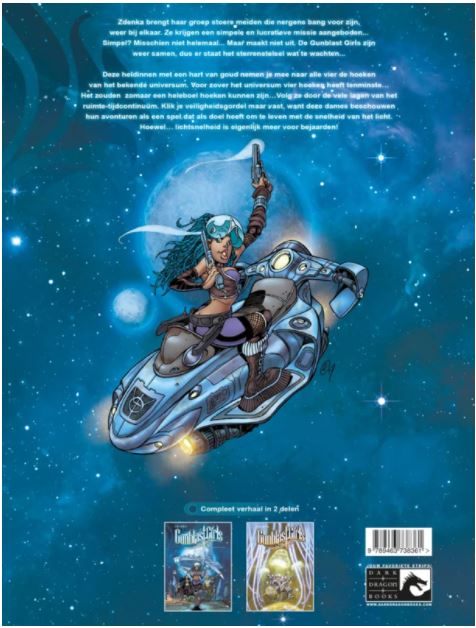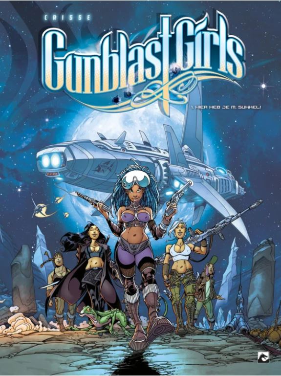 Striptekenaar Crisse Didier ( belgië, 1948) tekende en schreef mee aan volgende stripreeksen • Atalante • Atalante Odysse • Canari • De Kid • De Phaeton • Het Kristallen Zwaard • Ishanti • > Kalimbo • Kookaburra • Kookaburra K • La Contessa • Luuna • Mini-Cats • Nahomi • Nicodemus Red • Casus • Nico • Zwarte Waterlelies • Carmen Mc Callum • Private Ghost • Tinkelbel in Wonderland Inhoud: Deze heldinnen zijn voor de duivel niet bang! Deze stoere meiden met een hart van goud nemen je mee naar alle uithoeken van het bekende universum. Ervan uitgaande dat een heelal natuurlijk hoeken heeft: het zouden ook zomaar talloze bochten kunnen zijn! Je volgt ze door meerdere lagen van het ruimte-tijd continuüm. Klik je veiligheidsgordels maar vast, want avontuur voor deze dames is een spel met als doel een sprankelend leven met de snelheid van het licht. Maar... lichtsnelheid is voor oudjes! Gunblast Girls Tekst & tekeningen: Didier Crisse