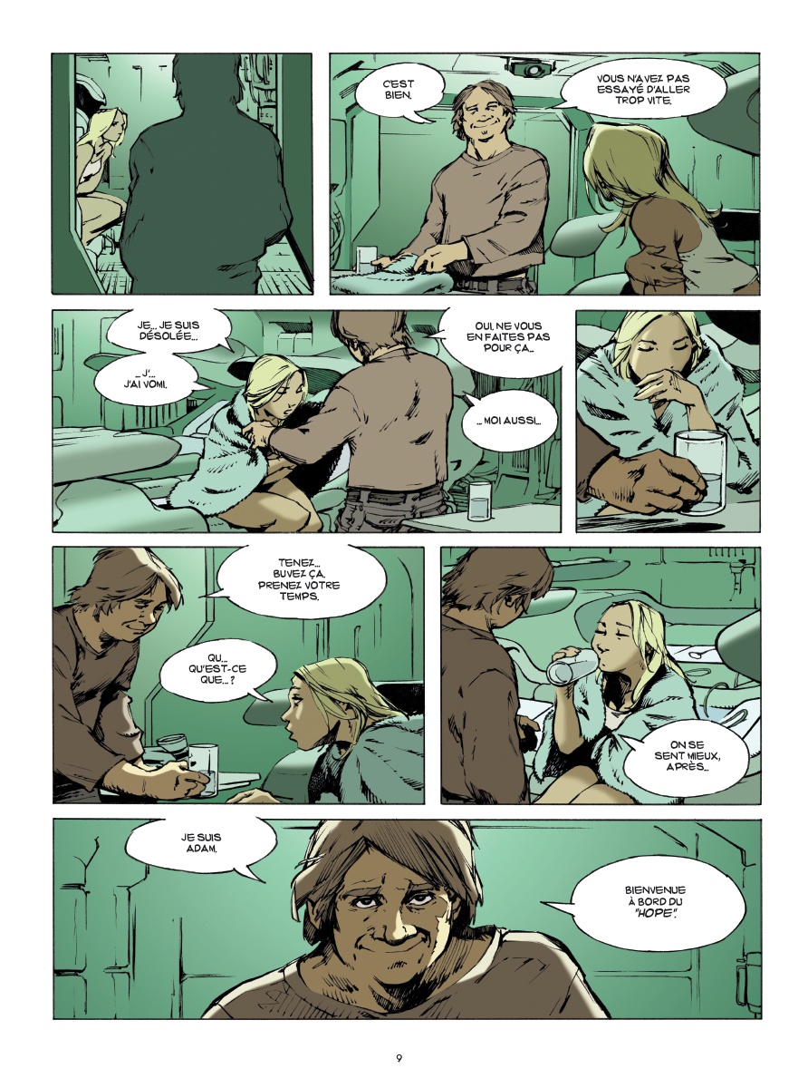 Het scenario en tekeningen werden uitgewerkt door ‘Fane, pseudoniem voor Stéphane Deteindre (Steamliner, Joe bar Team). We krijgen samen met Megan met mondjesmaat nieuwe informatie binnen, waardoor de spanning geleidelijk aan opgebouwd wordt. Maar naarmate je meer weet, komen er ook nieuwe vragen naar boven. Het mysterie rond de Hope one wordt telkens groter en de geloofwaardigheid van Adam wordt meer en meer in twijfel getrokken. De tekeningen onderbouwen hierbij het geheel. Deze zijn niet overmatig gedetailleerd uitgewerkt, waardoor de focus op het verhaal en het mysterie blijft. De pagina’s zijn klassiek gekadreerd waarbij er op iedere pagina zich wel een gebeurtenis afspeelt, waardoor de vaart in het verhaal blijft en deze niet begint te vervelen binnen de benauwde ruimtes.