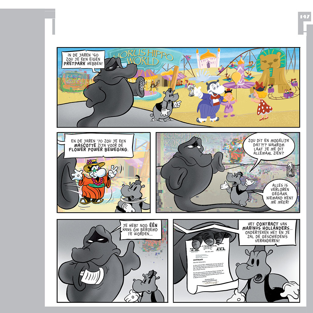 Horus Hippo, alias Kwab, is een eerbetoon aan de eerste Nederlandse tekenfilmster uit 1926. Oorspronkelijk gecreëerd door Marinus Hollanders van Teekenfilmfabriek Hollandia uit Haarlem, herleeft deze iconische figuur nu in een compleet vernieuwde graphic novel. Striptekenaar Stefan de Groot combineert eerder verschenen verhalen (Kwab van het witte doek en Kwab en de Wereld van WatAls: De Retroflits) met 120 extra pagina’s. Deze nieuwe uitgave bevat ook een flipboekanimatie en achtergrondinformatie over Horus Hippo’s historische betekenis.