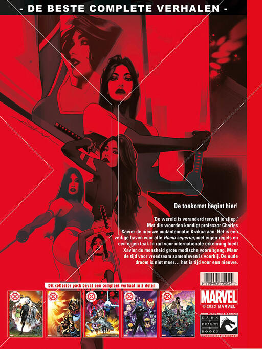ZELFDE COLLECTORS PACK MAAR MET ANDERE KAFT De toekomst begint hier! ‘De wereld is veranderd terwijl je sliep.’ Met die woorden kondigt professor Charles Xavier de nieuwe mutantennatie Krakoa aan. Het is een veilige haven voor alle Homo superior, met eigen regels en een eigen taal. In ruil voor internationale erkenning biedt Xavier de mensheid grote medische vooruitgang. Maar de tijd voor vreedzaam samenleven is voorbij. De oude droom is niet meer... het is tijd voor een nieuwe.