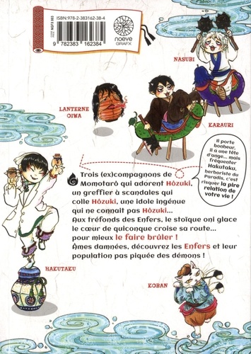 Trois (ex)compagnons de Momotarô qui adorent Hôzuki, un greffier à scandales qui colle Hôzuki, une idole ingénue qui ne connaît pas Hôzuki... Aux tréfonds des Enfers, le stoïque oni glace le coeur de quiconque croise sa route... pour mieux le faire brûler ! Ames damnées, découvrez les Enfers et leur population pas piquée des démons !