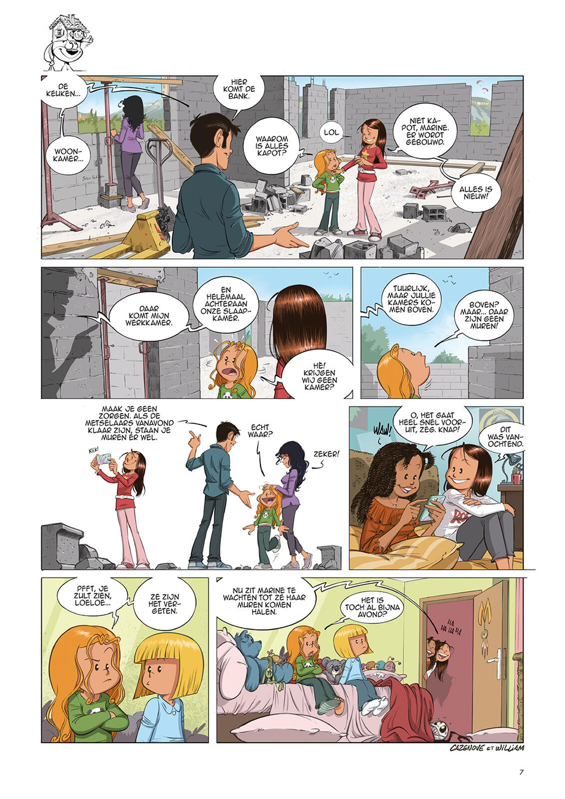 Het was niet toevallig dat papa en mama in het vorige album aan hun dochters vroegen om hun spullen op te ruimen… Zij wisten al dat ze met z’n allen gingen verhuizen! Verbaasd verkennen Marine en Wendy hun nieuwe kamers en hun nieuwe huis, hun nieuwe plek voor spelletjes en ruzies. Zolang je je vriendinnen en je vriendje kunt blijven zien, en je het dagboek van je Sister kunt stelen, maakt het niet uit in welk huis je woont. Trouwens, Marine zou zelfs op Pluto kunnen wonen, zolang haar knuffel Puduk maar meegaat (en dat is precies ook wat Wendy soms wenst!)