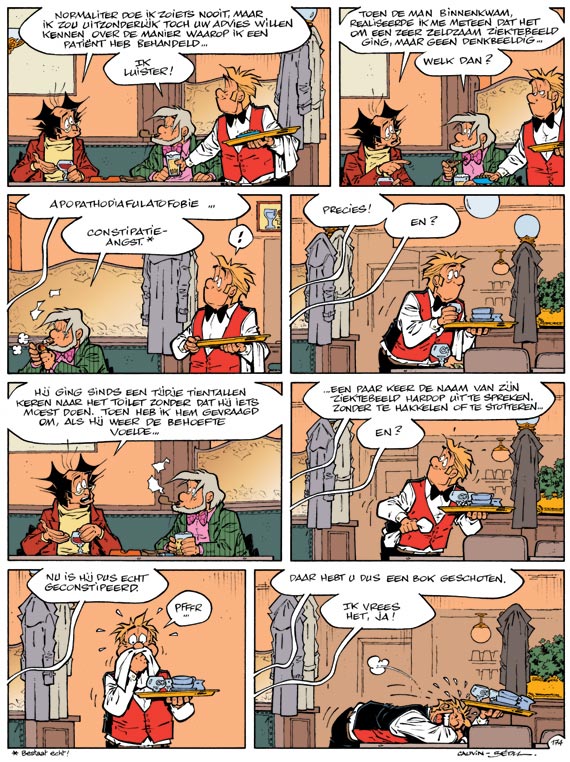 Ben je tweede geworden tijdens een missverkiezing en heb je er de pest in? Denkt je man dat hij een vleermuis is, zijn zoon een kikvors en dat jij een krokodil bent? Lijd je aan een of andere constipatieangst*, een andere angstpsychose of ben je manisch depressief? Word je dag en nacht achternagezeten door opdringerige fans? Kortom: kun je niet meer en wil je alles veranderen? Geen probleem: ga liggen, haal diep adem en vertel alles. De psy doet de rest.