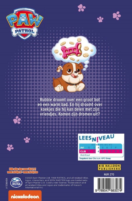 'PAW Patrol' is een avontuurlijke en razend populaire animatieserie over een reddingsteam dat uit puppy's bestaat. De Nickelodeon-serie is gericht op peuters en kleuters en wordt wereldwijd in meer dan 170 landen uitgezonden. En dankzij de 'PAW Patrol'-boeken kunnen fans nu ook zónder scherm genieten van hun favoriete puppy's!