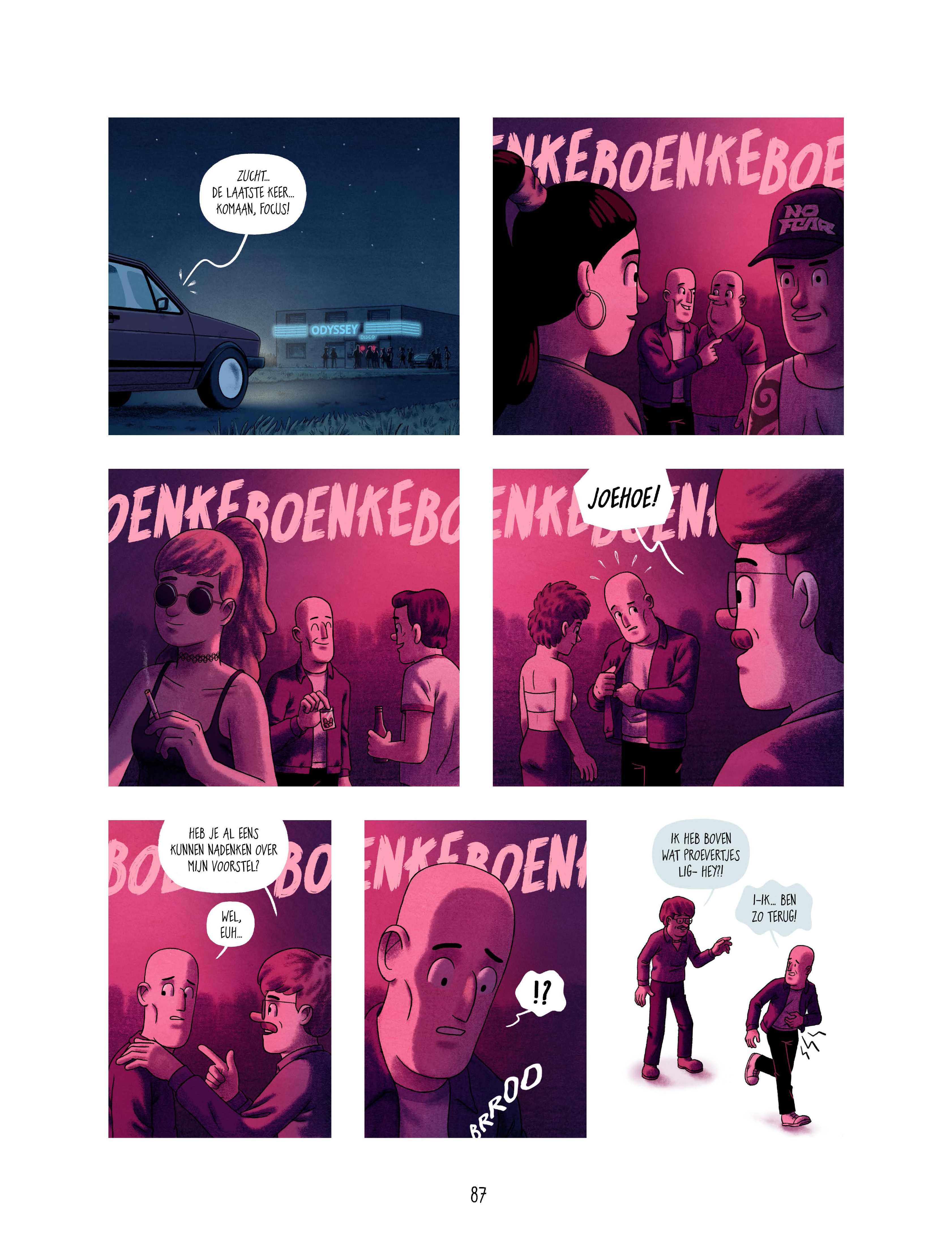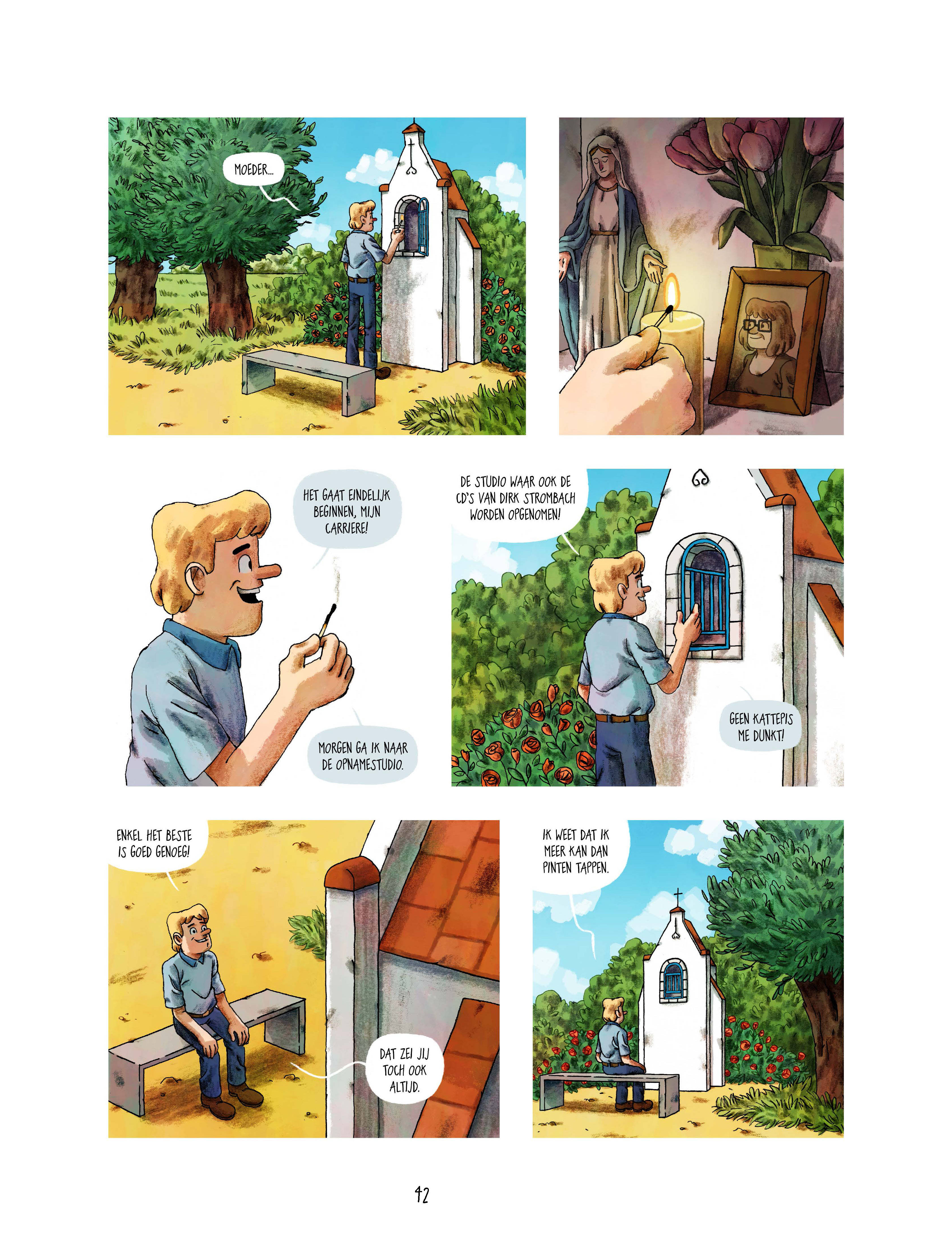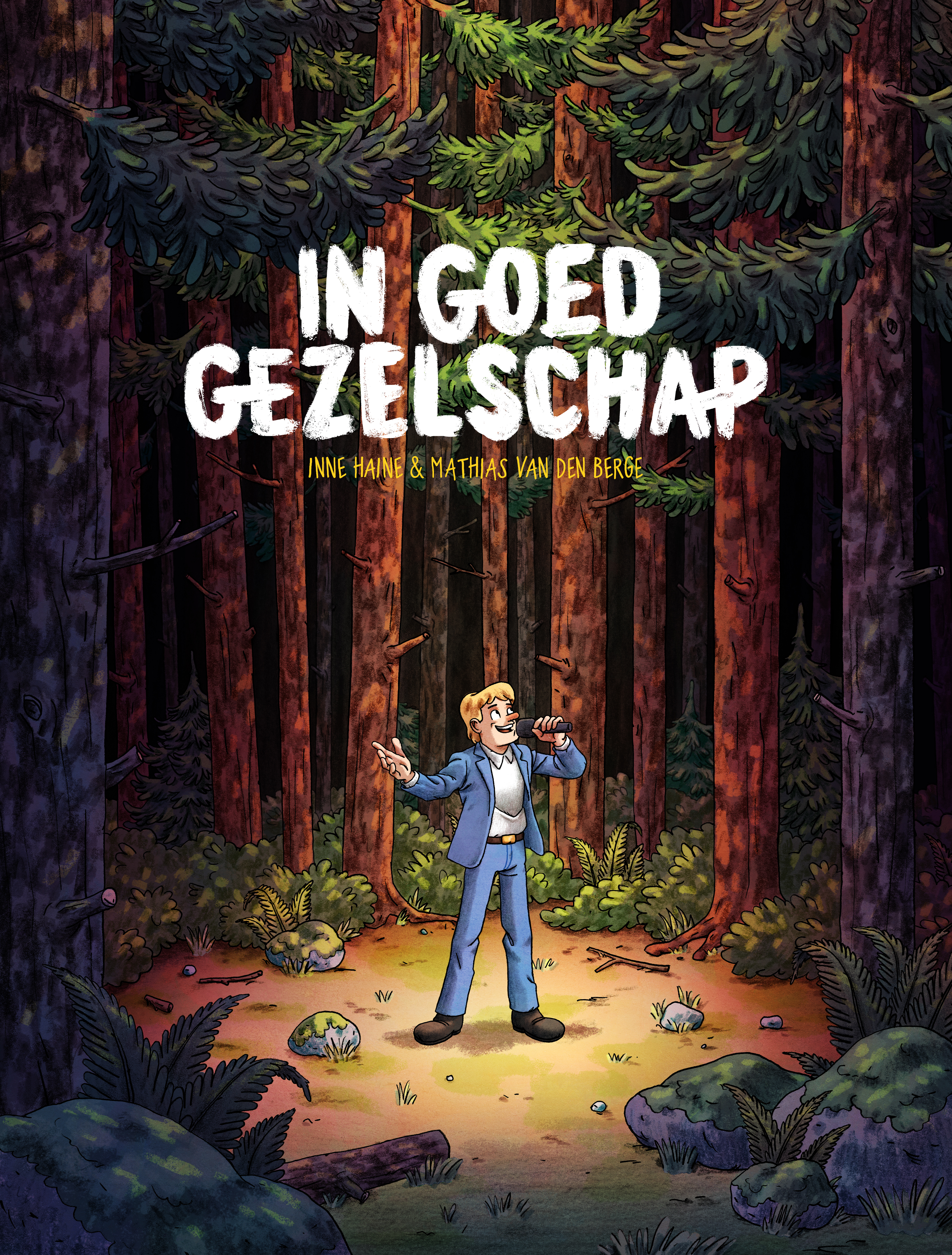 Gemiddelde score 3 / 5Een dorp in Vlaanderen Het is mei 1997 en we maken kennis met enkele figuren in de gemeente Lintdorp. Er is bakker Rudy, die met pensioen gaat maar tijdens de viering in het cafe In Goed Gezelschap in elkaar zakt. Zijn vrouw Julia vult daarna de leegte door regelmatige babbeltjes met voorbijgangers te slaan. Daarnaast is er Martin Dupont, die samen met echtgenote Cecile het café runt. Martin doet er alles aan om een succesvol charmezanger te worden. Dat is niet helemaal naar de zin van Cecile die dan alleen instaat voor het café, het huishouden en ook voor de inwonende schoonvader Edgar die alles rondom hem bespiedt. Verder is er Elise, die als vakantiejob de vaste postbode een maand vervangt. De vriend van Elise, Franky, komt aan de kost als drugsdealer voor twee verschillende leveranciers, die echter niet akkoord zijn met deze concurrentie en alleenheerschappij wensen. De paden van deze personages zullen elkaar kruisen en dat loopt niet goed af. Zowel het scenario als de tekeningen zijn van Inne Haine samen met Mathias Van den Berge, die in het echte leven ook een koppel vormen. Van Inne Haine verscheen eerder in 2014 Het Mirakel van Vierves met opvallend mooie herfstkleuren. Voor het album In Goed Gezelschap zijn ze van start gegaan in 2018 en ze vonden hun inspiratie hiervoor bij de echte Vlaamse charmezangers Danny De Roover en Steven Tielens. De charmante dorpsmentaliteit van verschillende oprechte en ongecompliceerde figuren wekt automatisch sympathie op. De charme en het goede humeur straalt ook van hen af. Da’s uiteraard minder het geval bij figuren die slechte bijbedoelingen hebben. De tekenstijl is rechttoe rechtaan, zonder franje, statisch, een klare lijn met frisse kleuren. De kadertjes zijn niet omlijnd wat het luchtiger maakt. Origineel zijn de bespiedingen door de lichtjes demente Edgar, in beeld gebracht als een rechtvaardige scoutsjongen — een jong Kuifje — die de verdachte handelingen van anderen observeert en daar soms foute conclusies uit trekt. Ook origineel zijn de verfrommelde briefjes of dagboekuittreksels van Elise waarop de overpeinzingen te lezen zijn over haar vader en haar vriend. De leuke schutbladen van de cover werden duidelijk geïnspireerd door de albums van Kuifje waar steevast heel wat personages louter in silhouet of in het wit werden weergegeven. Het album laat je achter met een glimlach. bron ssz Goffin