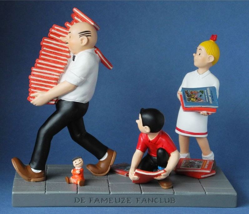 Deze uitgave verschijnt in een gelimiteerde oplage van 400 genummerde exemplaren en 26 auteursexemplaren, geletterd van A tot Z. Alle exemplaren gaan vergezeld van een door Fons van Dommelen gesigneerd certificaat. Het beeld heeft een afmeting van ca. L.22 cm x B.11 cm x H.20 cm Bekijk ook alle andere beeldjes van Suske en Wiske hier Parastone beeldjes Suske en Wiske Het iconische verhaal waar het tafereel op is gebaseerd werd in 1959 voorgepubliceerd in de krant en verscheen in 1960 voor het eerst in album. Deze beeldengroep van Parastone, 'Lambik met boeken', (SW 64) is speciaal gemaakt voor De Fameuze Fanclub, de fanclub voor fans van Suske en Wiske.