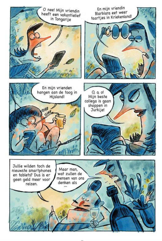 Ma, Pa, Bruista, Kalkta en Alfa vormen samen de familie Blet. Hun huisdier Helena, familie van de hyena-achtigen, maakt het gezellige gezin compleet. De Blets zijn helemaal verslingerd aan hun schermpjes. Dat leidt tot onvoorziene en hilarische toestanden. Wanneer hun schermgedrag uit de hand loopt, wil Pa Blet ingrijpen…