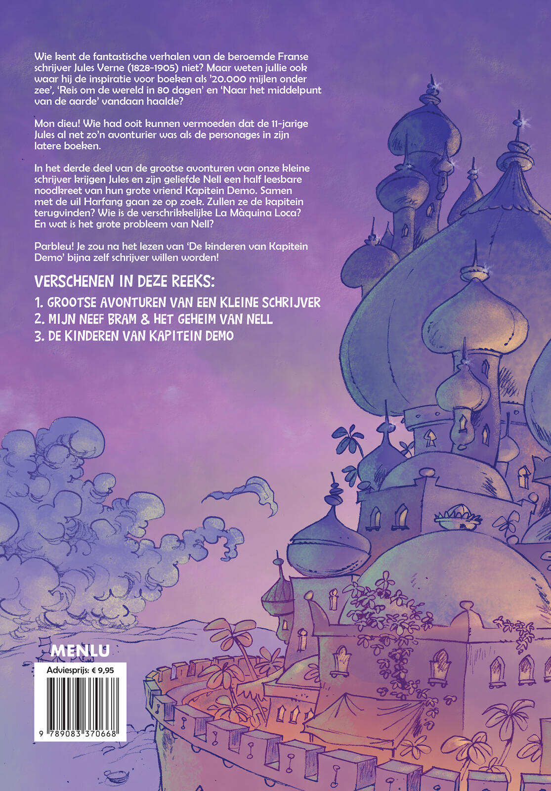 Ontdek de jeugdavonturen van de beroemde Franse schrijver Jules Verne in "De Kinderen van Kapitein Demo". Geïnspireerd door zijn eigen avontuurlijke jeugd, volgt dit album de elfjarige Jules en zijn vriend Nell op een spannende zoektocht naar kapitein Demo. Met de hulp van de wijze uil Harfang trotseren ze gevaarlijke situaties en ontdekken ze mysteries die de basis vormen voor Verne's toekomstige meesterwerken.