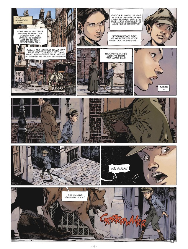 Londen, 1895. Het zijn ernstige tijden voor de vrijbuiters van Baker Street! Om Puck, hun jongste rekruut, te redden uit de klauwen van een oude vijand, ziet Black Tom zich gedwongen zijn activiteiten als inbreker te hervatten in opdracht van Patch, de verschrikkelijke koning van het Court of Miracles in East End... Het doelwit van de inbraak? Het sinistere Zwarte Museum, in het hart van Scotland Yard! Daar bewaart de Metropolitan Police van Londen zijn meest beroemde criminele relikwieën, waaronder een authentieke brief van Jack de Ripper – een uniek stuk dat de hebzucht wekt van een kring van zeer speciale verzamelaars... Gedwongen te handelen zonder medeweten van hun werkgever, de beroemde Sherlock Holmes, raken Tom, Billy en Charlie (om de kat Watson niet te vergeten!) verzeild in een nieuw avontuur vol risico, gevaar, mysterie en emotie! Eén voor allen, allen voor één: de Vier van Baker Street zijn er klaar voor! Een onmisbare serie in de catalogus van Vents d'Ouest, met meer dan 250.000 verkopen, Les Quatre de Baker Street dompelt ons onder in een nieuw avontuur in het hart van de Londense onderwereld. Een fascinerend tiende deel, met een sfeer vol spanning en een lawine van onthullingen voor onze jonge detectives!