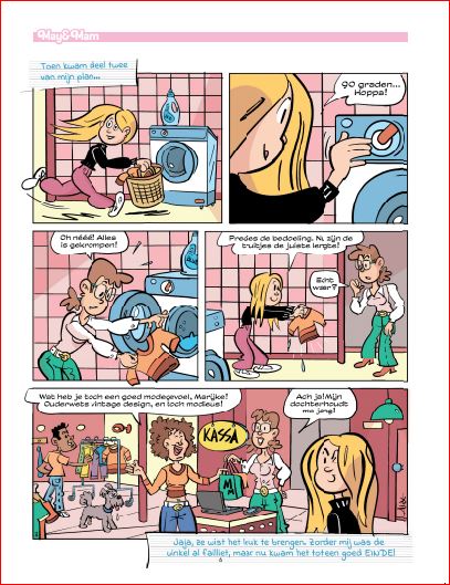 May woont bij haar moeder en helpt haar in de vintage-kledingwinkel. De winkel is gevestigd in een mooi grachtenpand en wordt verhuurd door de eigenaardige gezusters Miezer. De zolder wordt verhuurd aan muzikale Marvin die een oogje op de moeder van May heeft. Het beste maatje van May is haar klasgenootje Thijs. De vader van May is na de scheiding in België gaan wonen. Zo nu en dan heeft hij een vriend, maar het wil nog niet echt lukken in de liefde en dat geldt helaas voor alle hoofdpersonen. Desondanks zien ze allemaal de zonnige kant van het leven en is vriendschap het belangrijkste voor iedereen.