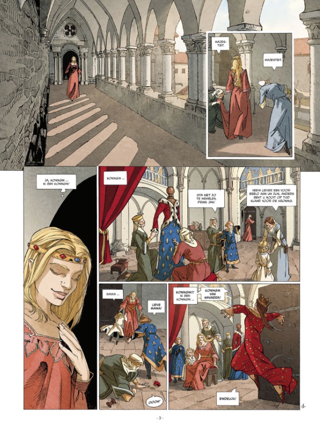 Johanna verblijft met haar kinderen in het Paleis van Tau, dat grenst aan de kathedraal van Reims. Het is het bisschoppelijk paleis, de verblijfplaats van de koningen tijdens de kroning. Eindelijk is ze koningin! Ze geniet ten volle van dit genademoment terwijl ze wacht om de kroning van de graaf van Vlaanderen, Lodewijk van Nevers, bij te wonen. Maar ze zal geen tijd krijgen om van de ceremonie te genieten, want droevige gebeurtenissen vereisen haar ‘expertise’.
