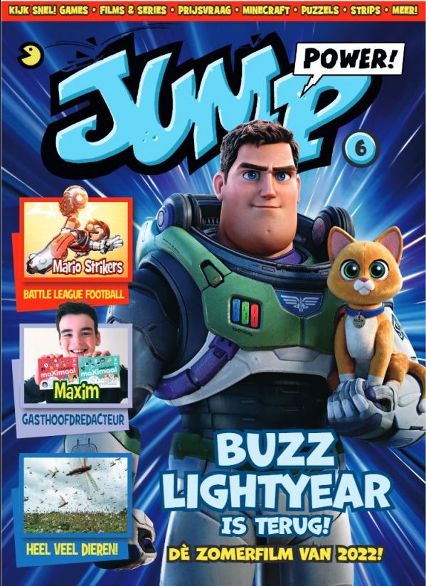Wil je op de hoogte zijn van de nieuwste games, films, strips, speelgoed, spelletjes, boeken en tv-series? Lees dan Jump POWER! – het meest complete maandblad voor jongens en meiden. Jump POWER #6 heeft als gasthoofdredacteur de jongste spellenmaker van de BeNeLux, Maxim! Dus dit nummer is verzekerd van de leukste spellen : ) En uiteraard weer heel veel strips, puzzels en het meest actuele nieuws over games en films, zoals Buzz Lightyear!
