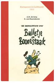 De levertermijn van de boeken van Uitgeverij Boumaar (indien we ze niet op stock hebben) is iets langer dan gewoonlijk. Gelieve hiermee rekening te houden. Alvast bedankt voor uw geduld. Bulletje en Boonestaak begonnen hun carriëre in 1922 en die duurde tot 1937. 44 Avonturen werden in de socialistische krant voorgepubliceerd en 19 verhalen kwamen in vijf verschillende periodes uit in boekvorm: in oblonbundelingen in de twintiger jaren, op pocketformaat in de jaren dertig (kleine gebonden harde kaften – pocket werd pas na de oorlog als benaming ingevoerd), weer oblong in de jaren vijftig en daarna op comic-formaat met een geheel nieuwe lay-out in de jaren zestig en zeventig. Met deze Boumaar-reeks is begonnen, daar waar andere uitgevers ophielden: bij verhaal 20 en afgemaakt tot de laatste strook. De complete uitgavenreeks is na 14 jaar werken nu beschikbaar. De Jong en Van Raemsdonck waren vrienden zoals Bulletje en Boonestaak waren in hun avonturen. Waarschijnlijk kun je De Jong vergelijken met Bulletje: een lawaaipapagaai die barstte van de energie en ideeën, streken uithaalde en verhalen kon vertellen als geen ander. ‘t Leverde de beste en meest humoristische verhalen op tot Franquin die met Guus Flater evenaarde. In alle 44 delen worden stukjes uit die periode, anecdotes van beide heren en tijd waarin zij leefden, besproken. Nu, na 95 jaar nog altijd een ‘must’ om te lezen. Opmerking c.q. waarschuwing: de strip bevat blote billen, grof taalgebruik en duidelijke stellingnames tegen ieder geweld, dat door De Jong en Van Raemdonck duidelijk en afschrikwekkend in beeld is gebracht. zwart/wit