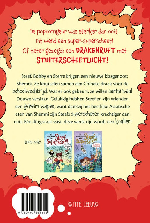 Steef, Bobby en Sterre krijgen een nieuwe klasgenoot: Xia. Ze knutselen samen een Chinese draak voor de schoolwedstrijd. Dankzij het heerlijke Aziatische eten van Xia zijn Steefs superscheten krachtiger dan ooit! Ze wekken zelfs de draak tot leven, wat handig is om hun aartsrivaal Douwe een lesje te leren… Zolang de school maar niet in de fik vliegt!