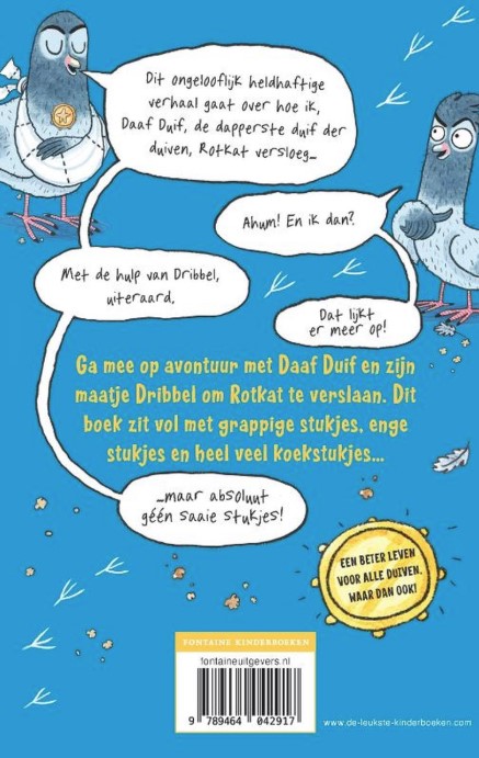 Katten opgepast! Daaf Duif schrijft een boek om Gemene Poes te verslaan om zo alle andere duiven te helpen.