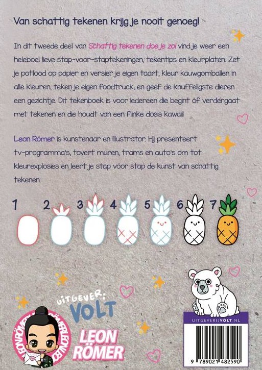 Na het succes van Schattig tekenen doe je zo! is er nu deel 2, met nog meer allerliefste stap-voor-staptekeningen. Zet je potlood op papier en teken verschillende soorten honden en katten, koala’s en stekelvarkens. Teken de topping op je pannenkoek, kleur kauwgomballen in alle kleuren van de regenboog en maak de perfecte taart. Nieuw in deel 2 is de categorie voertuigen, zodat je voortaan de schattigste campers, politieauto’s en luchtballonnen kunt doodlen. Natuurlijk vind je ook in dit deel weer een heleboel tekentips van Leon Römer!
