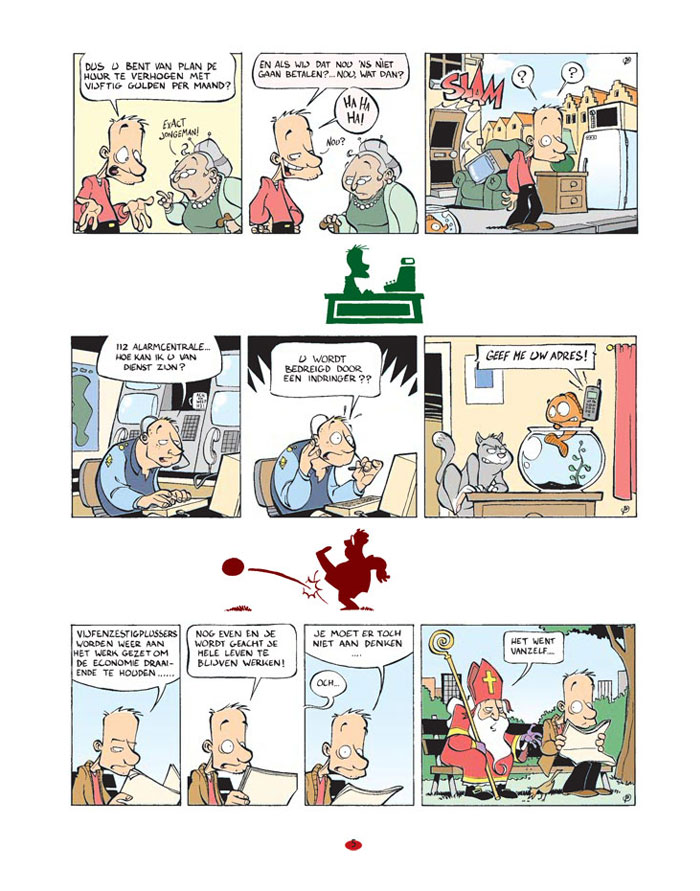 Machtsbeluste buitenaardse wezens, door de wol geverfde inspecteurs, naïeve huisgenoten en talentloze muzikanten. Hoe kun je jezelf staande houden in een leven dat wordt beheerst door malloten? ‘Door te tobben, door vraagtekens te plaatsen waar anderen punten zetten en het onheil recht in het gezicht uitlachen’, zou Eugène zeggen. En omdat gedeelde smart halve smart is, heeft Eugène heel wat kopzorgen minder. Dit humoristische album bevat geweldig tekenwerk. Jan Dirk Barreveld ontving in 2001 niet voor niets uit handen van het Stripschap de 'Aanmoedigingsprijs voor Strips'.