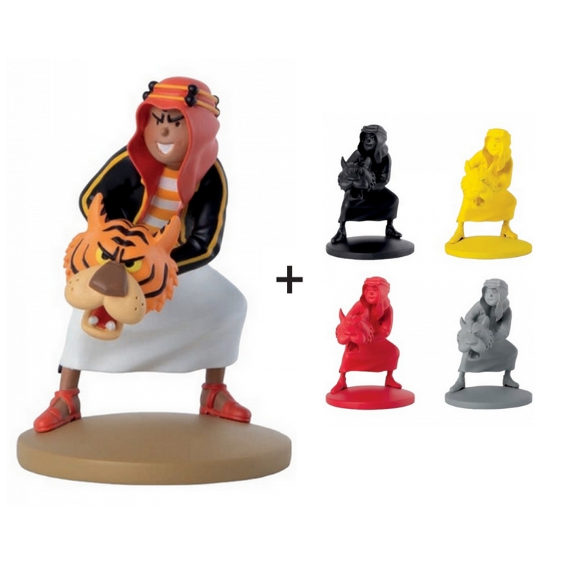 Een pakket van 5 figuren, inclusief een gekleurde figuur van Abdallah met de tijger, alsook 4 monochrome figuren met een matte of satijnen afwerking (afhankelijk van de beschikbare voorraad). De gekleurde figuur van Abdallah met de tijger is uitsluitend verkrijgbaar bij aankoop van dit pakket van 5 figuren.