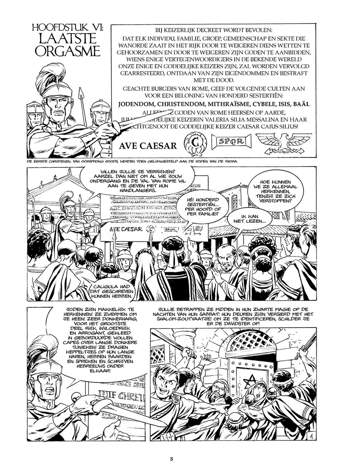 Zeer mooi getekend, prachtige architecturale uitleving. Wat extra geschiedenis in een notendop is een surplus. Sublieme erotische en vooral expliciete pornografische uitvergroting van de decadentie van het romeinse rijk. Fantastisch eindstuk van deze zesdelige reeks. Zeker de moeite waard.