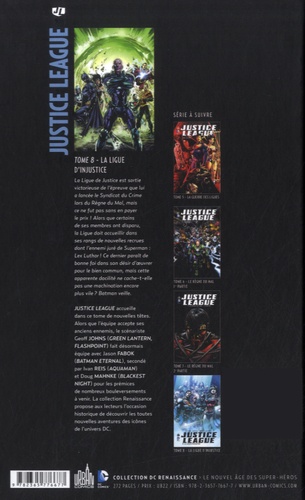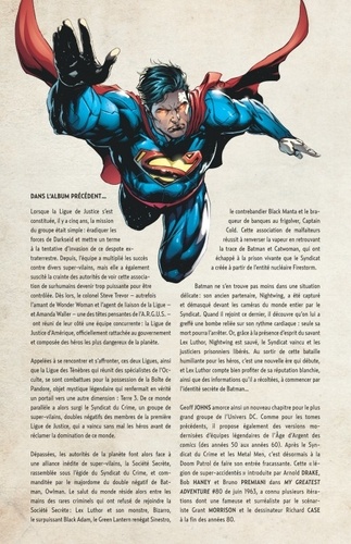 La Ligue de Justice est sortie victorieuse de l'épreuve que lui a lancée le Syndicat du Crime lors du Règne du Mal, mais ce ne fut pas sans en payer le prix ! Alors que certains de ses membres ont disparu, la Ligue doit accueillir dans ses rangs de nouvelles recrues dont l'ennemi juré de Superman : Lex Luthor ! Ce dernier paraît de bonne foi dans son désir d'œuvrer pour le bien commun, mais cette apparente docilité ne cache-t-elle pas une machination encore plus vile ? Batman veille.