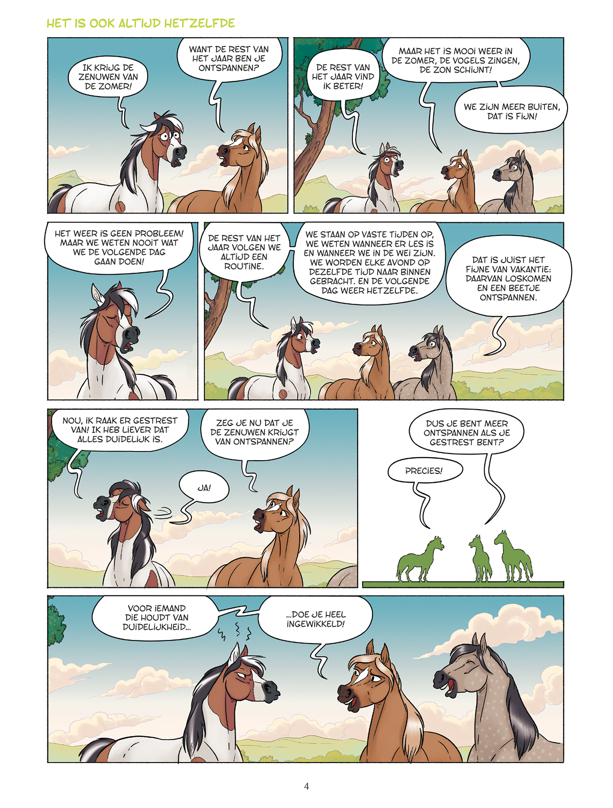 Het is zomer, de lessen zijn afgelopen, dus nu is er ruimte voor vakantiekampen. Op het programma staan equitherapie, allerlei spelletjes en logeren in tenten. En wees gerust, het warme seizoen weerhoudt onze vierbenige vrienden er niet van om hun hersenen op hol te laten slaan! Spring in het zadel voor een verfrissend album! Door de ogen van de vierbenige bewoners ontdek je een doldwaas leven op de manege! Tussen de paardrijlessen door haalt een gezellig en kleurrijk clubje paarden en pony’s grappen uit, terwijl ze alles in de gaten houden en de ruiters het leven zuur maken! Te Paard! is een humorstrip voor paarden- en andere dierenliefhebbers van alle leeftijden! Lees van dezelfde auteurs ook het hilarische avonturen van de Crazy cavia's!
