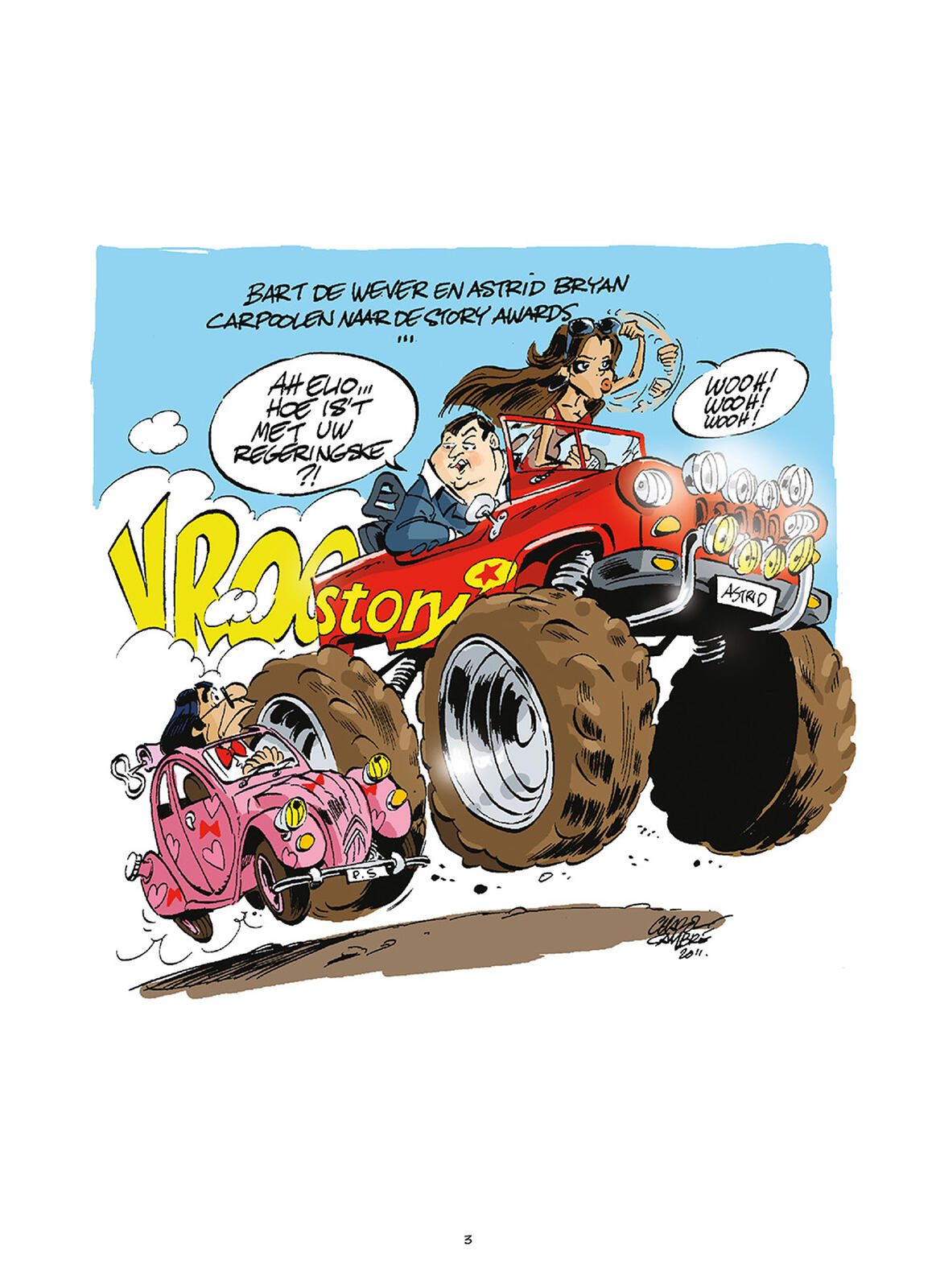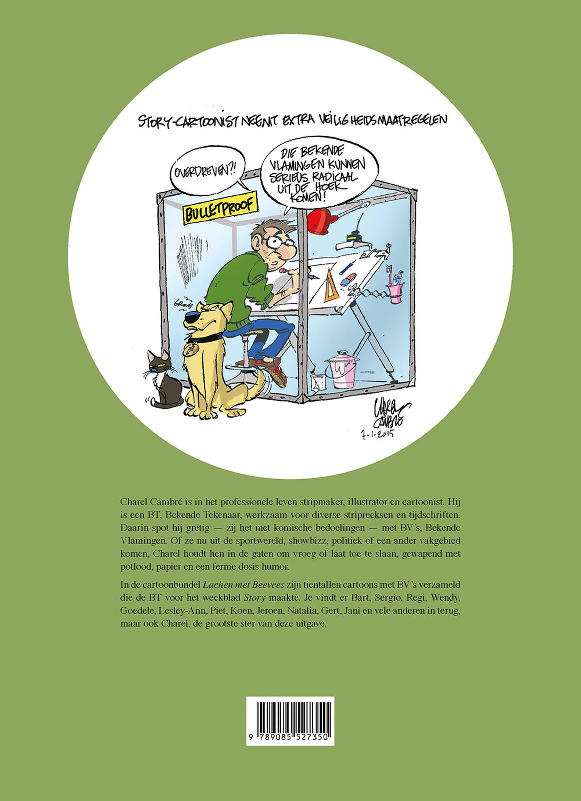 Deze hardcoverstrip bundelt meer dan zestig cartoons van Charel Cambré die hij doorheen de jaren voor het weekblad Story tekende. 'Charel Cambré is in het professionele leven stripmaker, illustrator en cartoonist. Hij is een BT, Bekende Tekenaar, werkzaam voor diverse stripreeksen en tijdschriften. Daarin spot hij gretig — zij het met komische bedoelingen — met BV’s, Bekende Vlamingen. Of ze nu uit de sportwereld, showbizz, politiek of een ander vakgebied komen, Charel houdt hen in de gaten om vroeg of laat toe te slaan, gewapend met potlood, papier en een ferme dosis humor. In de cartoonbundel Lachen met Beevees zijn tientallen cartoons met BV’s verzameld die de BT voor het weekblad Story maakte. Je vindt er Bart, Sergio, Regi, Wendy, Goedele, Lesley-Ann, Piet, Koen, Jeroen, Natalia, Gert, Jani en vele anderen in terug, maar ook Charel, de grootste ster van deze uitgave.'
