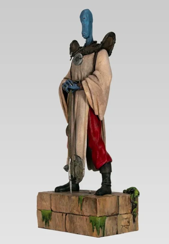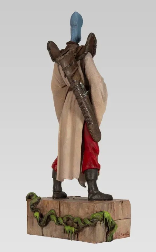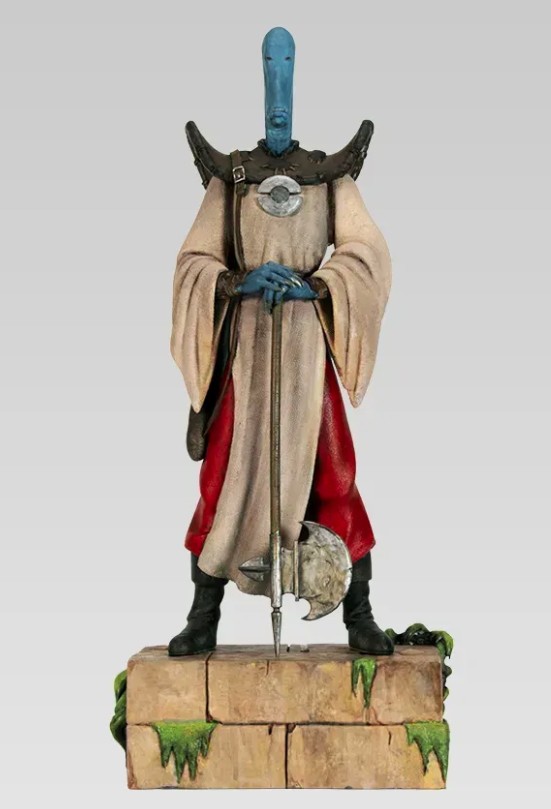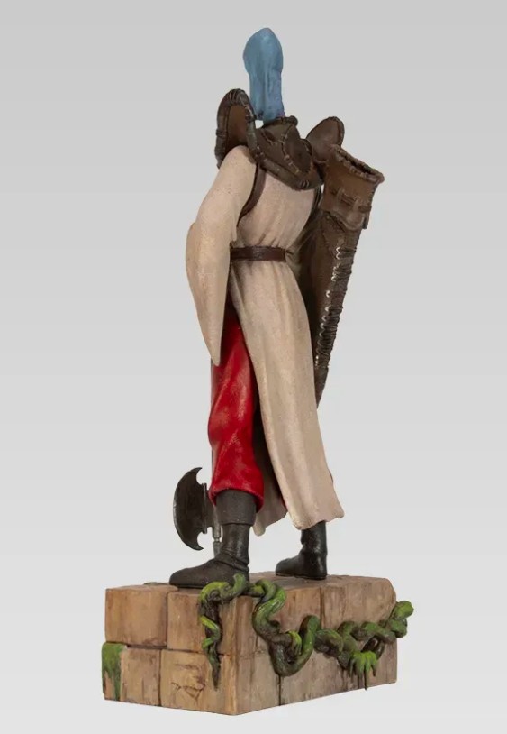 Découvrez la statue du terrible Rige avec sa hache, le chasseur obsessionnel et guerrier légendaire de La Quête de l’oiseau du temps.