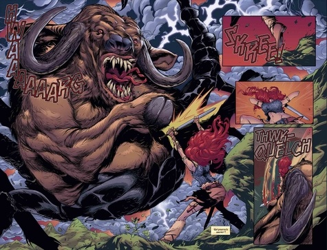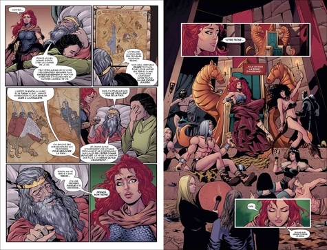 A travers les plaines d'Hyrkania, une nouvelle se répand au son des cornes, cloches et cris : le Roi se meurt ! Red Sonja décide de porter secours au Roi mourant pour le protéger des tentations de sédition des peuples hyborien toujours prêt à guerroyer. A cette occasion, Red Sonja revient sur les terres qui l'ont vu naître et où le sang de ses parents a coulé de nombreuses années auparavant... Red Sonja (à prononcer Red Sonia, Sonia la Rousse), la diablesse à l'épée revient pour une aventure qui la renvoie aux sources de son existence ! Un temps partenaire de Conan dans le monde imaginaire hyborien, Sonja, la rousse guerrière d'Hyrkania, est archétype de la belle et fière femme barbare, qui trace son chemin seule et combat les méchants et les monstres propres à l'univers de héroïc-fantaisy.