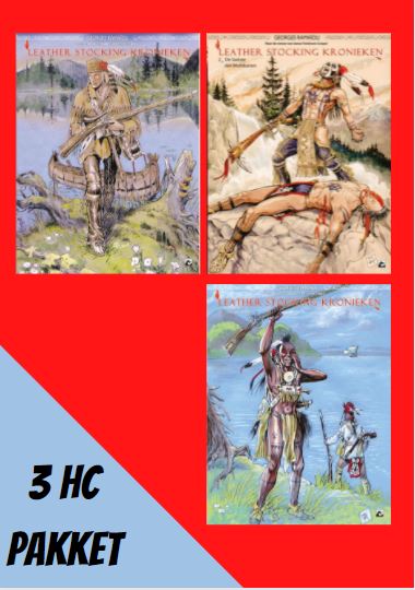 Eerste drie delen hardcover! van de tekenaar van Zoulouland,... leather Stocking is een zeer oude reeks die in het Frans verscheen onder de naam Bas de Cuir uitgegeven in de jaren 90 door Soleil maar niet vertaald werd. Tekenaar Ramaioli schreef onder het pseudoniem ROCCA ook heel veel stripreeksen zoals De Khan Goudvreter Vae Victis Wanted The Leather Stocking Kronieken is een bewerking van vijf romans van James Fenimore Cooper, wiens werk ‘The Last of the Mohicans’ het meest bekend is. Het leven van Nathaniel Bumppo, alias Leather Stocking is gevuld met avonturen met zijn vrienden Chingachgook en zijn zoon Uncas, de laatste van de Mohikanen. Zijn toewijding en moed tijdens de koloniale oorlogen en zijn constante vlucht naar het westen voor de binnenvallende beschaving zijn legendarisch... Leather Stocking Kronieken Naar het verhaal van James Fenimore Cooper