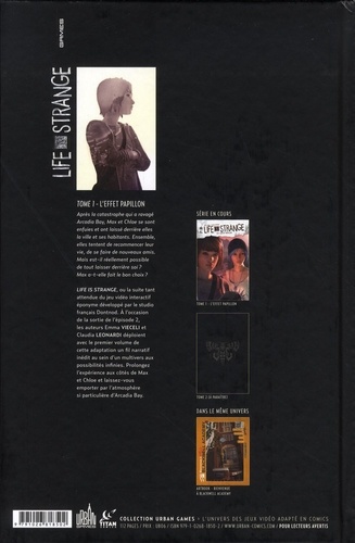 Après la catastrophe qui a ravagé Arcadia Bay, Max et Chloe se sont enfuies et ont laissé derrière elles la ville et ses habitants. Ensemble, elles tentent de recommencer leur vie, de se faire de nouveaux amis. Mais est-il réellement possible de tout laisser derrière soi ? Max a-t-elle fait le bon choix ? LIFE IS STRANGE, ou la suite tant attendue du jeu vidéo interactif éponyme développé par le studio francais Dontnod. A l'occasion de la sortie de l'épisode 2, les auteurs Emma VIECELI et Claudia LEONARDI déploient avec le premier volume de cette adaptation un fil narratif inédit au sein d'un multivers aux possibilités infinies. Prolongez l'expérience aux côtés de Max et Chloe et laissez-vous emporter par l'atmosphère si particulière d'Arcadia Bay.