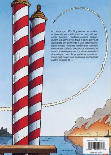 Printemps 1963, Lefranc se rend à Alméria en Espagne pour les vacances. Seulement quelques semaines plus tôt, le journaliste, aidé de l'inspecteur Renard, résout un vieux mystère familial : la disparition en 1938 d'Antoine Lefranc, l'oncle de Guy, durant la guerre civile espagnole. Mais grâce aux investigations de l'inspecteur, Guy sait désormais que son oncle est mort accidentellement en Espagne en 1946, laissant derrière lui une veuve et un enfant. Lefranc part faire la connaissance d'Inès de la Serna, la femme de son oncle, et de sa fille Soledad. Mais à peine arrivé, Lefranc est confronté à un drame : deux avions militaires américains viennent d'entrer en collision et ont explosé en plein vol. Des tonnes de débris métalliques retombent au sol. Et parmi ces débris, quatre bombes H. En quelques minutes, la région d'Alméria est plongée en pleine catastrophe nucléaire...