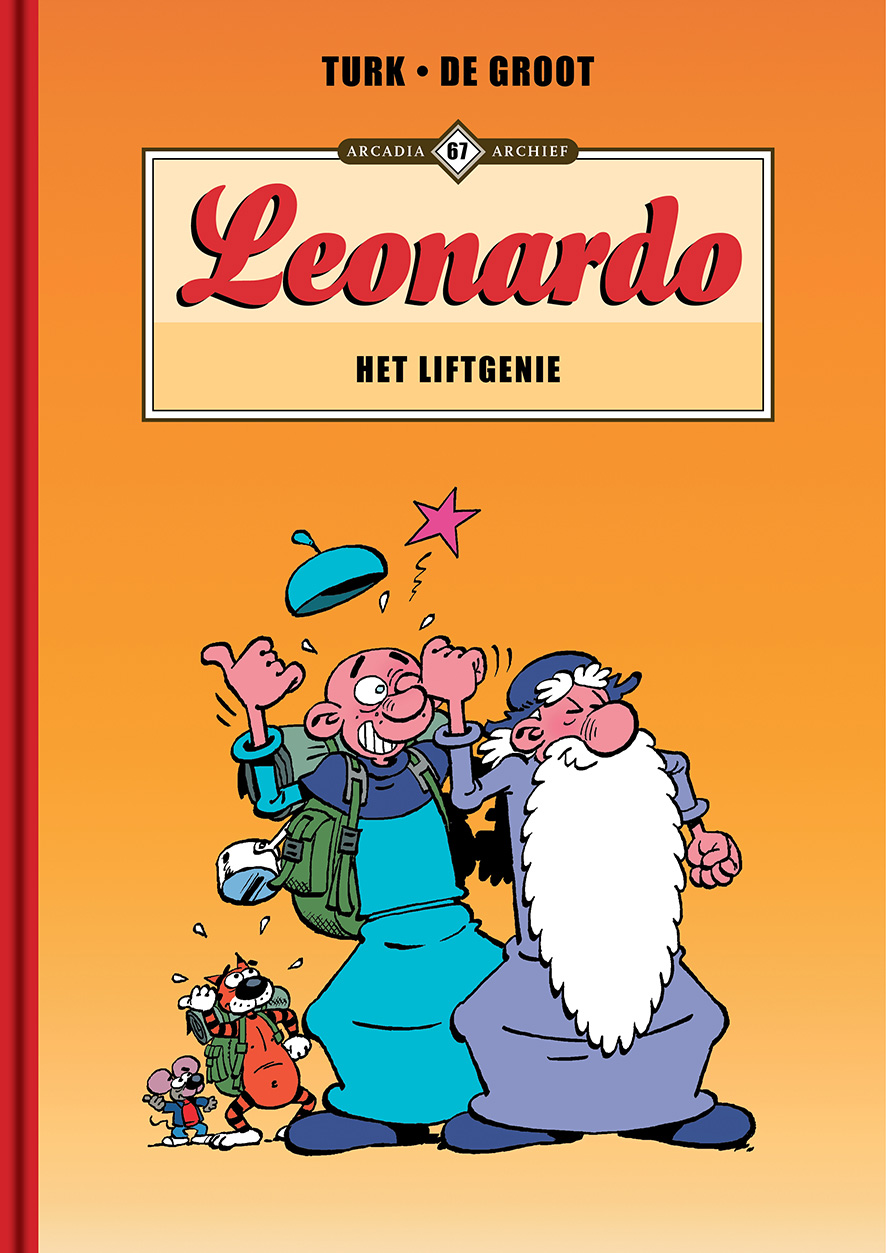LEONARDO - HET LIFTGENIE Met 'Het Liftgenie' is Arcadia toe aan het 2de album van de gedreven uitvinder Leonardo (naar Leonardo da Vinci) in de reeks Arcadia Archief. Basiel, de ietwat slome leerling van Leonardo, is opnieuw vaak de pineut en valt zo onder meer ten prooi aan het hardhandig ontwaken door zijn meester of dient als proefkonijn voor een zoveelste knotsgekke uitvinding. Ook nu weer laat Arcadia door middel van diverse gags en korte verhalen de lezer smullen van de avonturen van Leonardo en zijn knullige hulpje. De lotgevallen van Leonardo zijn van de hand van Turk, ook bekend van de reeksen 'Robin Hoed', het eerder bij Arcadia verschenen 'Dokter Geluk' en de avonturen van de Engelse speurder 'Clifton', en van scenarist Bob De Groot. 'Het Liftgenie' is de vertaling van het Franse deel 41 dat reeds van 2011 dateert. In het Frans loopt de serie nog, nu evenwel op scenario van veelschrijver Zidrou, en schept zo de mogelijkheid voor Arcadia om nog een tijdje zoet te zijn met de vertaling en de uitgave van diverse belevenissen van Leonardo!