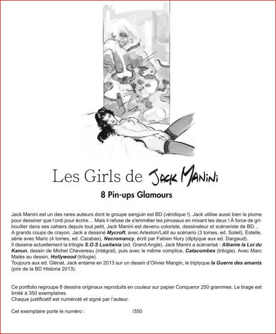 Deze gelimiteerde portfolio op slechts 350 ex van 14 prachtige tekeningen van Jack Manini op 8 tekenvellen zijn nu ook bij Stripweb te verkrijgen. met certificaat gesigneerd door de auteur opgepast we hebben er maar een stuk of 2