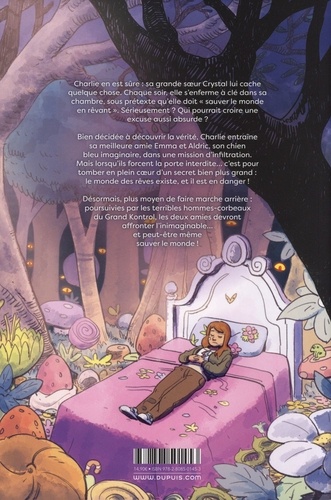 Charlie en est sûre : sa grande soeur Crystal lui cache quelque chose. Chaque soir, elle s'enferme à clé dans sa chambre, sous prétexte qu'elle doit " sauver le monde en rêvant ". Sérieusement ? Qui pourrait croire une excuse aussi absurde ? Bien décidée à découvrir la vérité, Charlie entraîne sa meilleure amie Emma et Aldric, son chien bleu imaginaire, dans une mission d'infiltration. Mais lorsqu'ils forcent la porte interdite... c'est pour tomber en plein coeur d'un secret bien plus grand : le monde des rêves existe, et il est en danger ! Désormais, plus moyen de faire marche arrière : poursuivies par les terribles hommes-corbeaux du Grand Kontrol, les deux amies devront affronter l'inimaginable... et peut-être même sauver le monde !