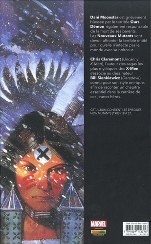 Danielle Moonstar fait partie des Nouveaux Mutants, la nouvelle génération de héros réunis par Charles Xavier. Elle est l'une des recrues les plus douées, mais la jeune indienne cache un terrible secret : ses parents ont été tués par un Ours-Démon qui hante ses rêves. Quand il reprend vie, ses camarades mutants viennent en renfort pour l'aider à exorciser son passé. La série New Mutants imaginée par Chris Claremont dans les années 80 a pris son essor avec les dessins incomparables et surréalistes de Bill Sienkiewicz, qui n'a jamais autant brillé que dans la saga recueillie dans cet album. Jamais l'univers des mutants n'a été aussi torturé et mélancolique pour notre plus grand bonheur de lecteurs !