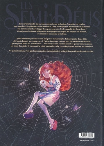 Parfois, avoir des super-pouvoirs est tout sauf une bénédiction. Issue d'une famille d'agriculteurs menacée par la famine, Asmodéeest vendue par son père à la puissante reine Bérénice. Dans son royaume où la misère côtoie la richesse, certains enfants abandonnés ont curieusement développé des pouvoirs extraordinaires : ils sont désormais ce qu'on appelle des Semi-Déus ! Oni a le don de dupliquer les objets tandis que d'autres comme Namielle peuvent soigner les blessés ou encore se rendre invisibles. Mais seule Asmodée possède le pouvoir unique de métamorphe. Faisant désormais partie d'une élite vénérée par la population, elle peut changer son apparence à l'infini. Pourtant, c'est au prix de terribles souffrances que la jeune fille s'est transformée... Car personne ne sait vraiment ce qui se trame derrière les murs du palais. Comment la reine se joue-t-elle de ces enfants élevés à servir ses intérêts et à assurer la prospérité de la cité ? Et que deviennent ceux pour qui l'expérience tourne mal ? Ce qui est certain, c'est que leurs capacités hors normes attirent la convoitise des autres cités... Quand le prince de Méridan se présente devant sa majesté, le secret le mieux gardé risque d'éclater au grand jour. Pour éviter que les Semi-deus ne lui échappent et que les dirigeants de la ligue n'apprennent la vérité, la reine a un plan. Et Asmodée pourrait lui être fort utile... Cette nouvelle série romanesque qui met à l'honneur l'imaginaire nous promet une aventure trépidante, machiavélique et remplie de suspense dans un univers empreint de mystère. Une grande série qui s'annonce d'ores et déjà captivante avec un florilège de personnages intrigants et une héroïne attachante pour découvrir un monde au-delà des apparences...