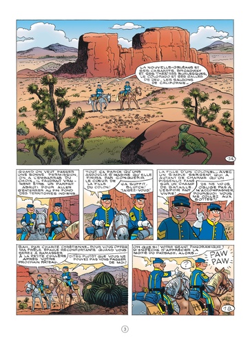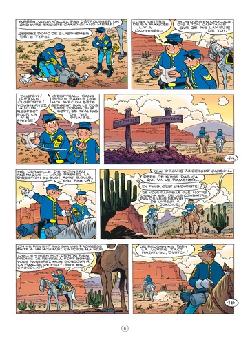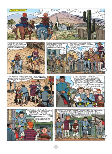 Alors qu'ils chevauchent vers une permission bien méritée, Blutch et Chesterfield assistent à l'assassinat de deux soldats sudistes par une troupe de brigands. Recueillant les dernières volontés de l'un des mourants, Chesterfield lui promet de ramener son médaillon à sa fiancée... C'est ainsi que nos deux amis - déguisés en Mexicains - se dirigent vers les territoires sudistes. Sans se douter qu'ils vont être pris pour les Confédérés décédés. Et découvrir que ces derniers faisaient partie d'un plan secret permettant de gagner de l'or. Beaucoup d'or. Assez pour que le Sud remporte la guerre... Souci supplémentaire : l'un des soldats les accompagnant pour récupérer le magot n'est autre que le fils d'un certain général Lee... Blutch et Chesterfield parviendront-ils à mettre la main sur le mythique trésor des sudistes ? Fred Neidhardt, à l'aise sur de nombreux registres, se glisse avec bonheur dans les bottes des Tuniques bleues, avec beaucoup d'humour et de culture. L'inépuisable Lambil est, comme toujours, impeccable.