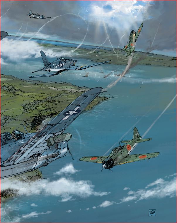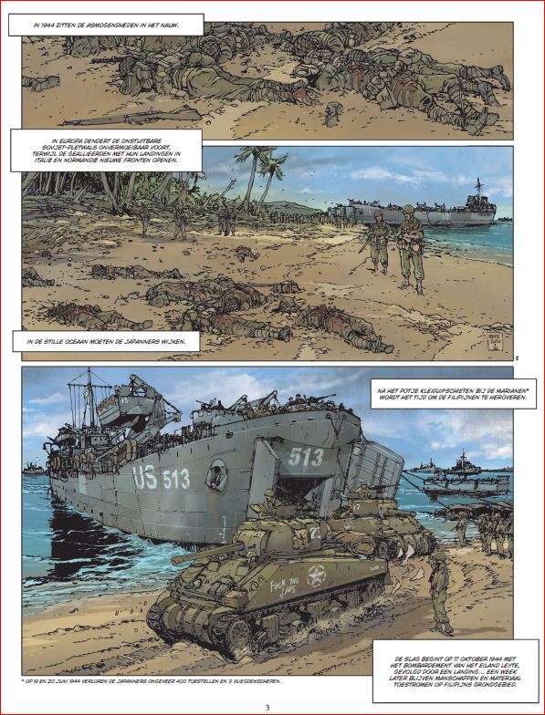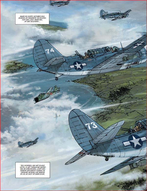 midden 2023 verschijnt het volgende album in deze reeks Falkland, De grote zeeslagen schrijf je in en we houden je als eerste op de hoogte. De grootste zeeslag uit de geschiedenis. In 1944 winnen de geallieerden herhaaldelijk van de asmogendheden. In de Stille Oceaan werden de Marianen heroverd door het Amerikaanse leger en werd de weg vrijgemaakt voor een massale aanval op Japan. Om het keizerlijke leger in het nauw te drijven, besloten de Amerikanen de Filipijnen binnen te vallen om de aanvoerroutes af te snijden en de vliegvelden op het land over te nemen. Leyte, gelegen in het centrum van de Filipijnse archipel, was het eerste eiland dat door deze aanval werd getroffen. De Amerikanen willen koste wat het kost winnen. De ingezette armada was de grootste aller tijden. Ze hadden echter geen rekening gehouden met de extreme vastberadenheid van de Japanners, die al hun krachten bundelden in een wanhopig tegenoffensief. Even leek het alsof de geschiedenis het bekende spreekwoord ‘het geluk helpt de dapperen’ nog kracht zou bijzetten, want ondanks het flagrante overwicht van de Amerikanen bleef de uitkomst van de strijd enige tijd onzeker. Gelukkig voor het lot van de wereld keerde de Japanse bravoure en het eerste 'officiële' gebruik van kamikazes het tij niet. De geallieerden zouden weer winnen.