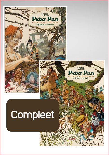 pakket met de twee integralen IN LUXE beperkte voorraad 'Peter Pan wordt algemeen beschouwd als een meesterwerk van Régis Loisel. Het werd dan ook hoog tijd voor een integrale uitgave van deze stripreeks! De geweldige bewerking die Loisel maakte van het alom bekende boek van James Matthew Barrie maakt optimaal gebruik van de extra mogelijkheden die het medium stripverhaal biedt ten opzichte van een geschreven roman. In dit deel 2 vervolgt Loisel zijn verhaal over de avonturen van Peter Pan en zijn vrienden, dat zich deels in Londen en deels op het magische eiland afspeelt, waar het tot een confrontatie komt met kapitein Haak. De twee delen waaruit deze integrale uitgave bestaat, bevatten een uitgebreid dossier met veel schetsen, niet eerder verschenen tekeningen en informatie over de strip en zijn auteur.'