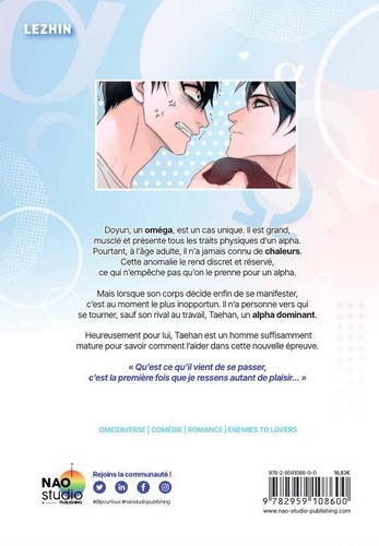 Doyun, un oméga, est un cas unique. Grand et musclé, il présente tous les traits physiques d'un alpha. Pourtant, à l'âge adulte, il n'a jamais connu de chaleurs. Cette anomalie le rend discret et réservé, bien que souvent pris pour un alpha. Cependant, lorsque son corps décide enfin de se manifester, c'est au moment le plus inopportun. Sans personne vers qui se tourner, il se retrouve face à son rival au travail, Taehan, un alpha dominant... "Qu'est-ce qu'il vient de se passer, c'est la première fois que je ressens autant de plaisir. ". . Vous pouvez également retrouver et acheter ce tome en ligne sur le site officiel de l'éditeur : https : //www. nao-studio-publishing. com