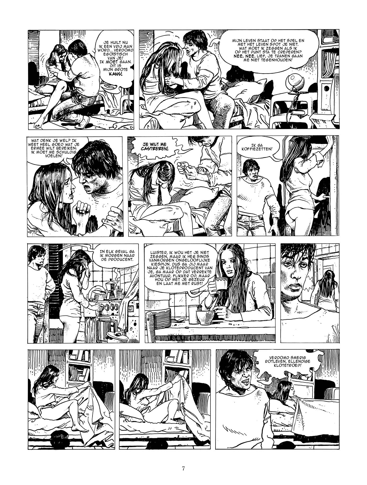 Milo Manara (geboren in 1945 in Luson, Italië) is een invloedrijke striptekenaar die wereldwijd bekendstaat om zijn verfijnde erotische tekenstijl, zijn cinematografische benadering van beeldverhaal, en zijn samenwerkingen met iconische auteurs zoals Federico Fellini en Hugo Pratt. Na een artistieke opleiding in Venetië begon hij zijn carrière in de jaren 1960-70 met het tekenen van western- en avonturenstrips. Zijn grote doorbraak kwam in 1978 met de publicatie van HP en Giuseppe Bergman, een reeks die niet alleen zijn artistieke signatuur bevestigde, maar ook zijn internationale reputatie als meester van het sensuele, dromerige beeldverhaal vestigde.