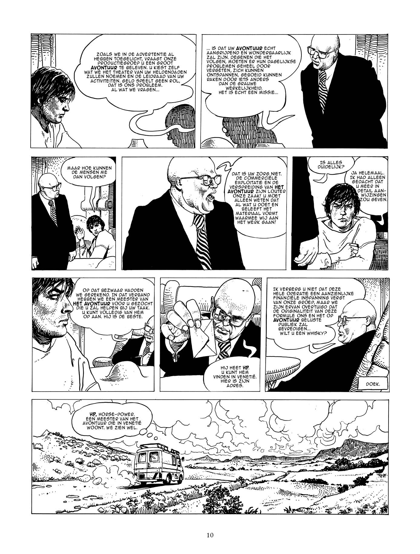 Giuseppe Bergman is geen klassieke held. Eerder een rusteloze dromer die “échte” avonturen wil meemaken, weg uit de benauwende routine. Net wanneer hij denkt dat het leven hem niets nieuws meer te bieden heeft, duikt de mysterieuze H.P. op, met het gezicht van Manara’s mentor Hugo Pratt (H.P. is geen toeval). Bergman wordt een verhaal ingezogen dat tegelijk opwindend én verdacht geënsceneerd aanvoelt.