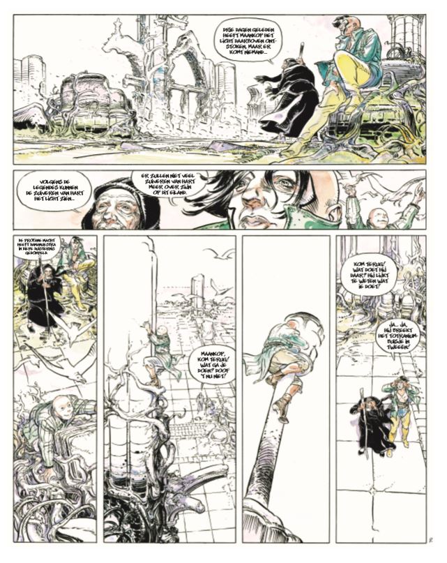 Maankop verscheen voor het eerst begin jaren 1999 in het beroemde stripblad (À suivre)/Wordt Vervolgd. Het verhaal speelt zich af op het eiland Damanuestra waar de bevolking gebukt gaat onder het juk van een dictator en zijn vrouw. Tot overmaat van ramp wordt het eiland geteisterd door gigantische golven die niets heel laten op hun weg. Maar de golven lijken geen vat te hebben op één persoon - een man zonder stem en zonder gezicht. De radeloze bevolking ziet in de golventemmer hun redder. Maankop is een ambitieuze vertelling waarvan het scenario zijdelings ook de geschiedenis van de twintigste eeuw overspant. Het betekent de start van twintig jaar vruchtbare samenwerking tussen François Boucq en Alejandro Jodorowsky, twee reuzen van de Negende Kunst. Eerste samenwerking van vele tussen Jodorowski en Boucq (Bouncer), twee reuzen van de Negende Kunst. Een gelaagd en maatschappijkritisch verhaal. De verhalen De onzichtbare kathedraal, De sluitsteen en Het ei van de ziel worden gebundeld in 2 integrales met een uitgebreid dossier.