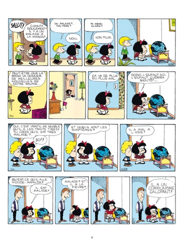 Mafalda, 46 ans, toutes ses dents et toujours aussi fraîche et impertinente ! On ne présente plus Mafalda, petite fille qui découvre la vie, ses joies, ses absurdités et ses horreurs. A travers l'éveil d'un enfant, Quino nous livre sa réflexion sur le monde et sur l'étrange animal qui le peuple : l'être humain. Quino donne naissance à Mafalda en 1964, personnage contestataire et anticonformiste de 10 ans, qui fera de lui un dessinateur mondialement reconnu. Les éditions Glénat sont fières de vous présenter la réédition complète de cette série emblématique à travers une nouvelle maquette sans aucun doute attrayante pour toutes les générations ! Petit bonus pour les inconditionnels, bibliophiles ou collectionneurs : une fois la série complète rééditée (janvier 2012), les tranches de tous les tomes rassemblés composeront un dessin décoiffant !