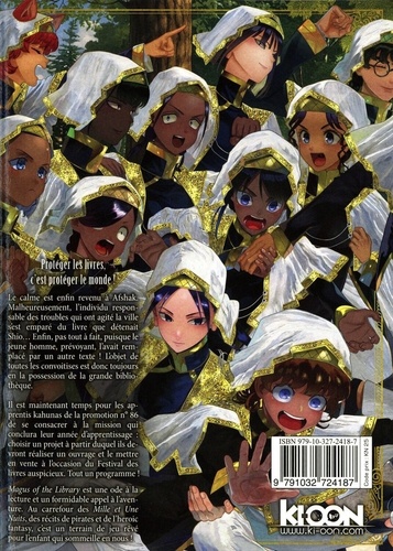 Protéger les livres, c'est protéger le monde ! Le calme est enfin revenu à Afshak. Malheureusement, l'individu responsable des troubles qui ont agité la ville s'est emparé du livre que détenait Shio... Enfin, pas tout à fait, puisque le jeune homme, prévoyant, l'avait remplacé par un autre texte ! L'objet de toutes les convoitises est donc toujours en la possession de la grande bibliothèque. Il est maintenant temps pour les apprentis kahunas de la promotion n° 86 de se consacrer à la mission qui conclura leur année d'apprentissage : choisir un projet à partir duquel ils devront réaliser un ouvrage et le mettre en vente à l'occasion du Festival des livres auspicieux. Tout un programme !