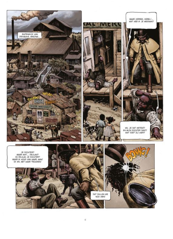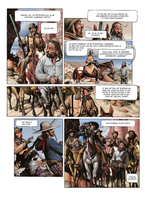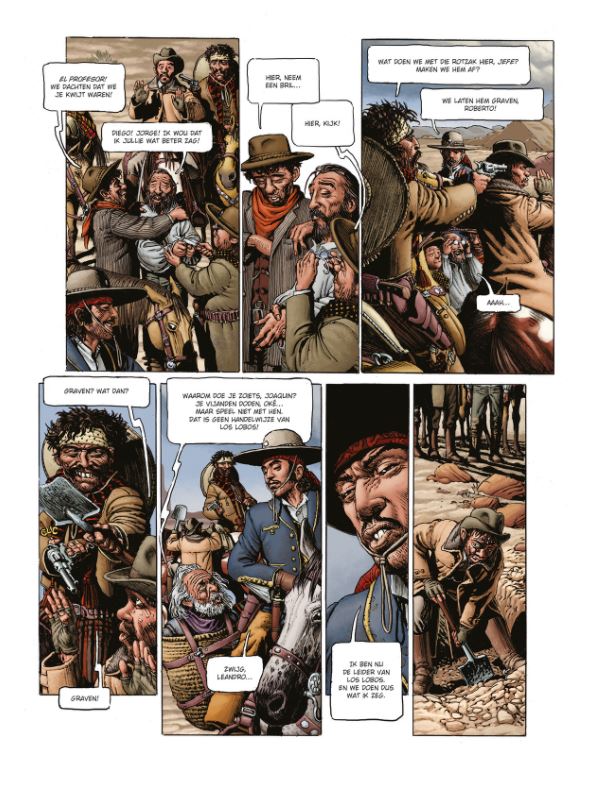 MET GRATIS A3 PRENT VOOR DE EERSTE AANKOPERS Het leven van Marshal Bass zou vast eenvoudiger zijn als hij zich enkel druk hoefde te maken over bandieten! Maar af en toe moet hij zich ook met zijn eigen familie bemoeien. Terwijl hij probeert zijn vrouw terug te vinden, die hem heeft verlaten voor de rijke veehouder Don Vega, merkt hij dat de brutale bende van Los Lobos hem is voorgegaan. Hun aanvoerder, Joaquin, de broer van Don Vega zelf, maakt zelfs een dochter van Bass het hof. Terwijl er een huwelijk in de lucht hangt dreigt er een genadeloze confrontatie tussen Bass en de schurken van Los Lobos. Ieder deel van Marshal Bass is een afgerond verhaal. Tekenaar Kordey kennen we van onder andere 1. Tarras Bulba 2. Empire 3. Aan het Front tekende ook enkele albums in deze reeksen 1. De Verborgen Geschiedenis 2. Uur U