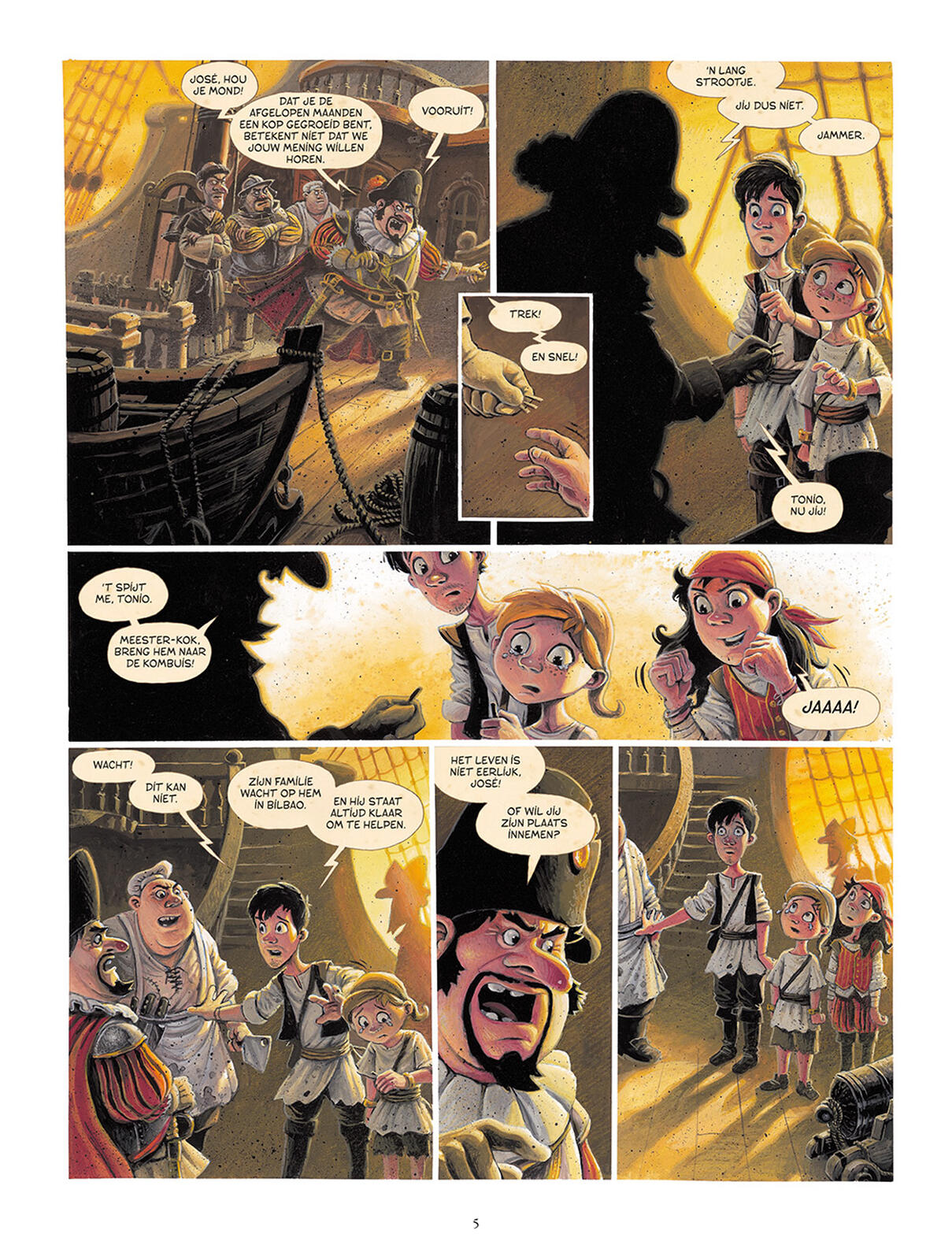 Beschrijving: Het is spannend, op het galjoen van de Spaanse kapitein Santoro. Want deze laatste, wiens voorraden uitgeput zijn, kiest een scheepsjongen uit... om hem op te eten! De jonge José, die op het menu van de bemanning staat, ontdekt gelukkig een onbekend land en weet te ontsnappen. Daar ontdekt hij een vreemd dier - geel met zwarte vlekken en met een lange staart... - dat door Santoro wordt verwond en waarmee José bijna omkomt. Opgevangen door de Chahutas-Indianen, ontdekt de scheepsjongen dat hij verbonden is met de Marsupilami, de 'geest van het woud'. Beiden voelen de pijn en emoties van elkaar... Het begin van een bevoorrechte relatie die al snel wordt gecompliceerd door de goudzucht van kapitein Santoro, vastbesloten om de vermeende El Dorado van de Chahutas te vinden...