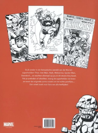 Duik onder in de fantastische wereld van de Marvel-superhelden! Thor, Iron Man, Hulk, Wolverine, Spider-Man, Daredevil... ze wachten allemaal op jou in dit prachtige kleurboek. Pak je potloden of viltstiften, breng de superhelden tot leven en tover de originele comic-covers om tot echte pareltjes... Een uniek boek voor fans van alle leeftijden!